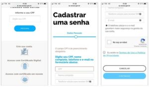 7- Caso você não tenha cadastro, será necessário clicar em “Crie sua conta” e seguir os passos conforme telas abaixo, bem simples e intuitivo;
